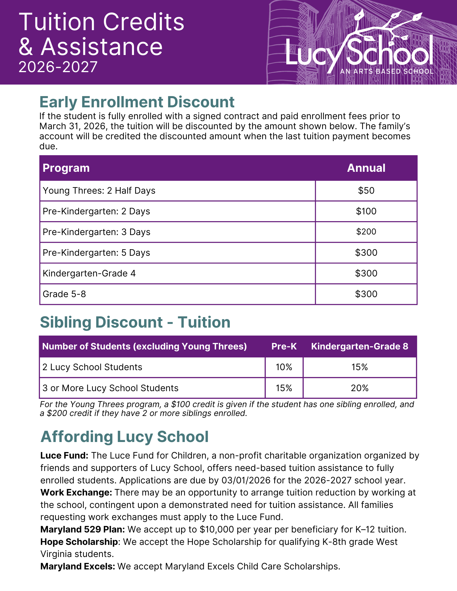 Affording Lucy SchoolWe are proud to offer a variety of tuition assistance opportunities to families. In 2024-25, more than 43% of our students received some form of tuition assistance. Click the logo images to learn more about the programs.